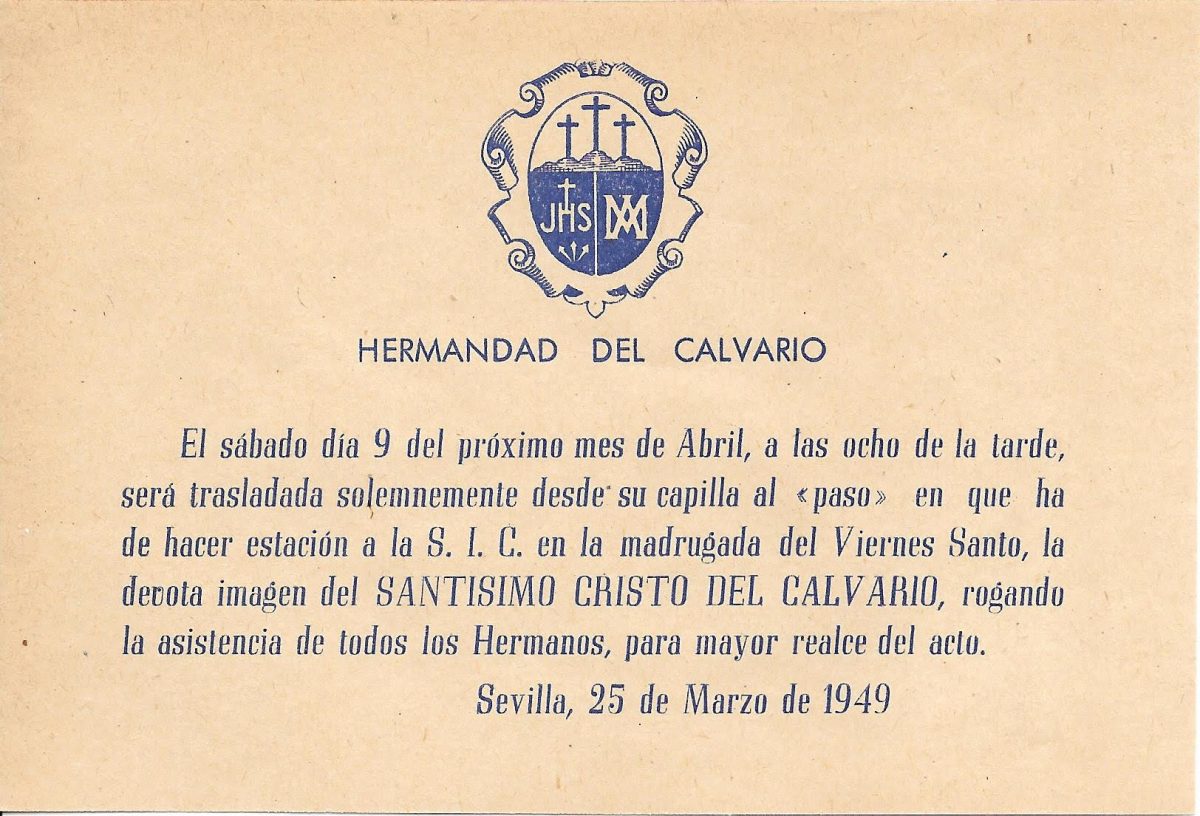 Rescatamos la convocatoria más antigua conservada para el solemne Traslado del Cristo al paso (1949)
